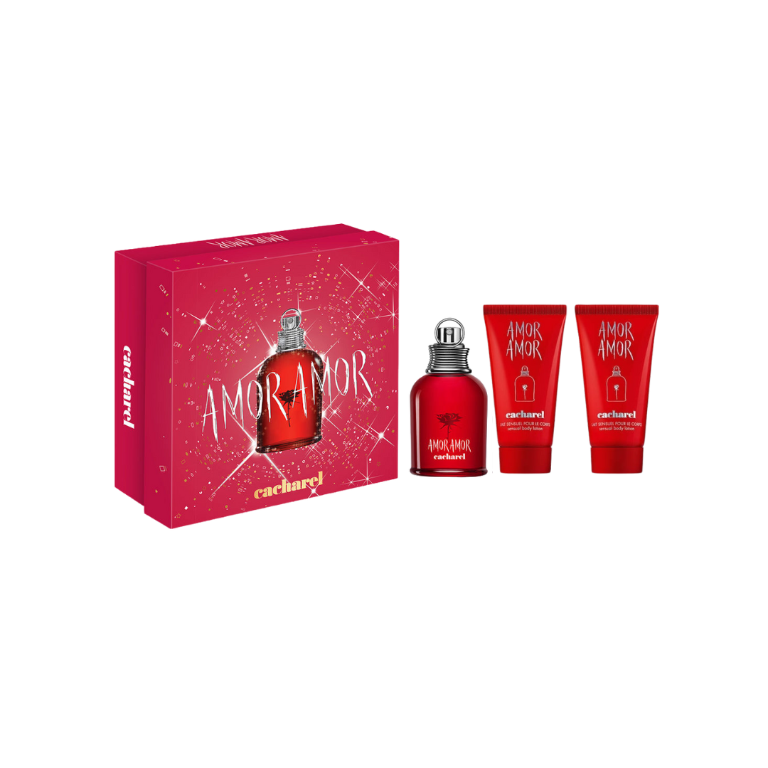 Ce coffret s’adresse aux femmes romantiques, joyeuses et pleines d’énergie, qui aiment les parfums vifs et sensuels. Amor Amor incarne l’amour fou et la spontanéité selon Cacharel.