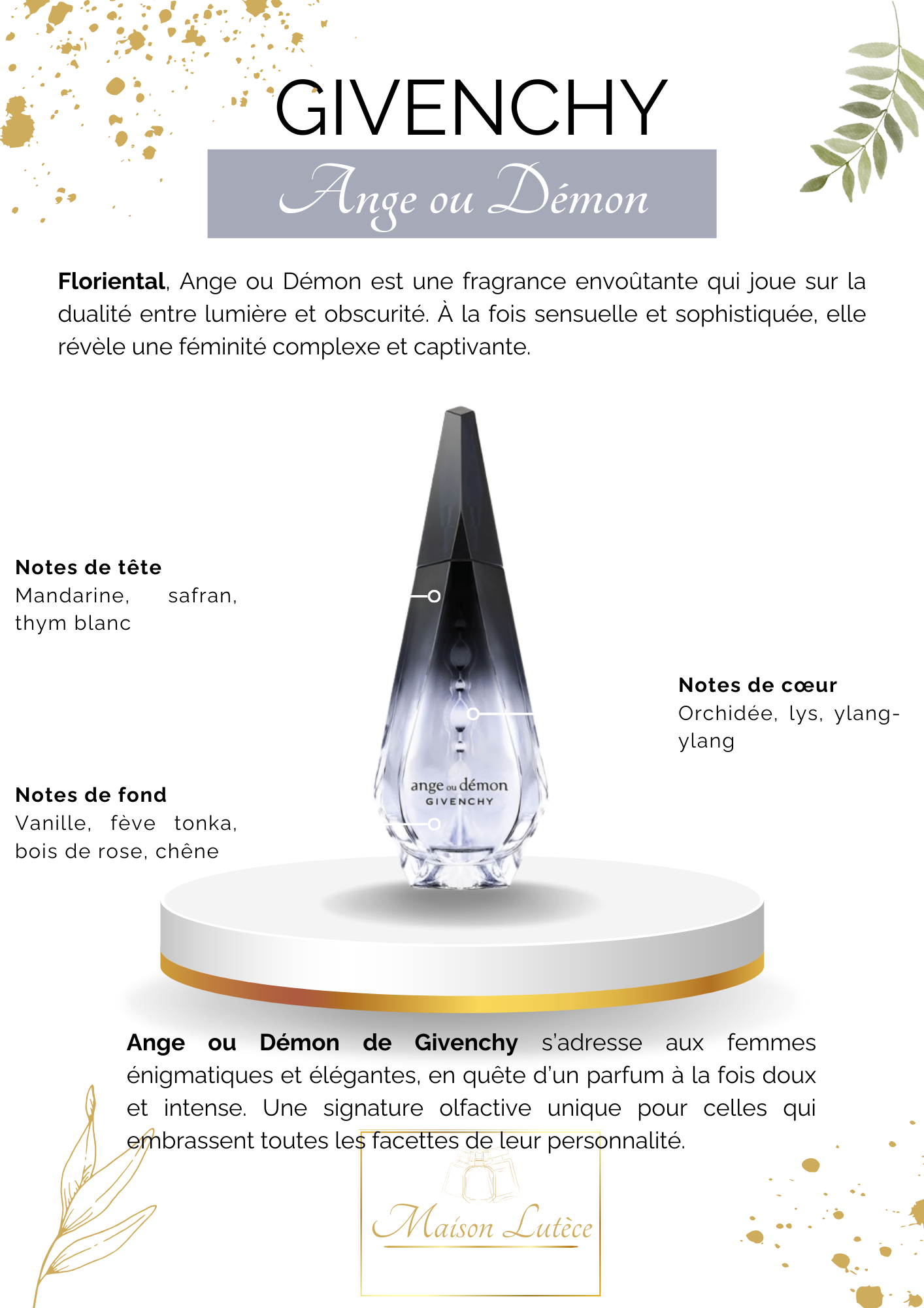 Véritable jeu de contraste, Ange ou Démon séduit par son sillage envoûtant et raffiné. Sa dualité florale et orientale reflète la complexité féminine avec élégance. Un parfum signature, magnétique, pour celles qui aiment captiver sans en faire trop.