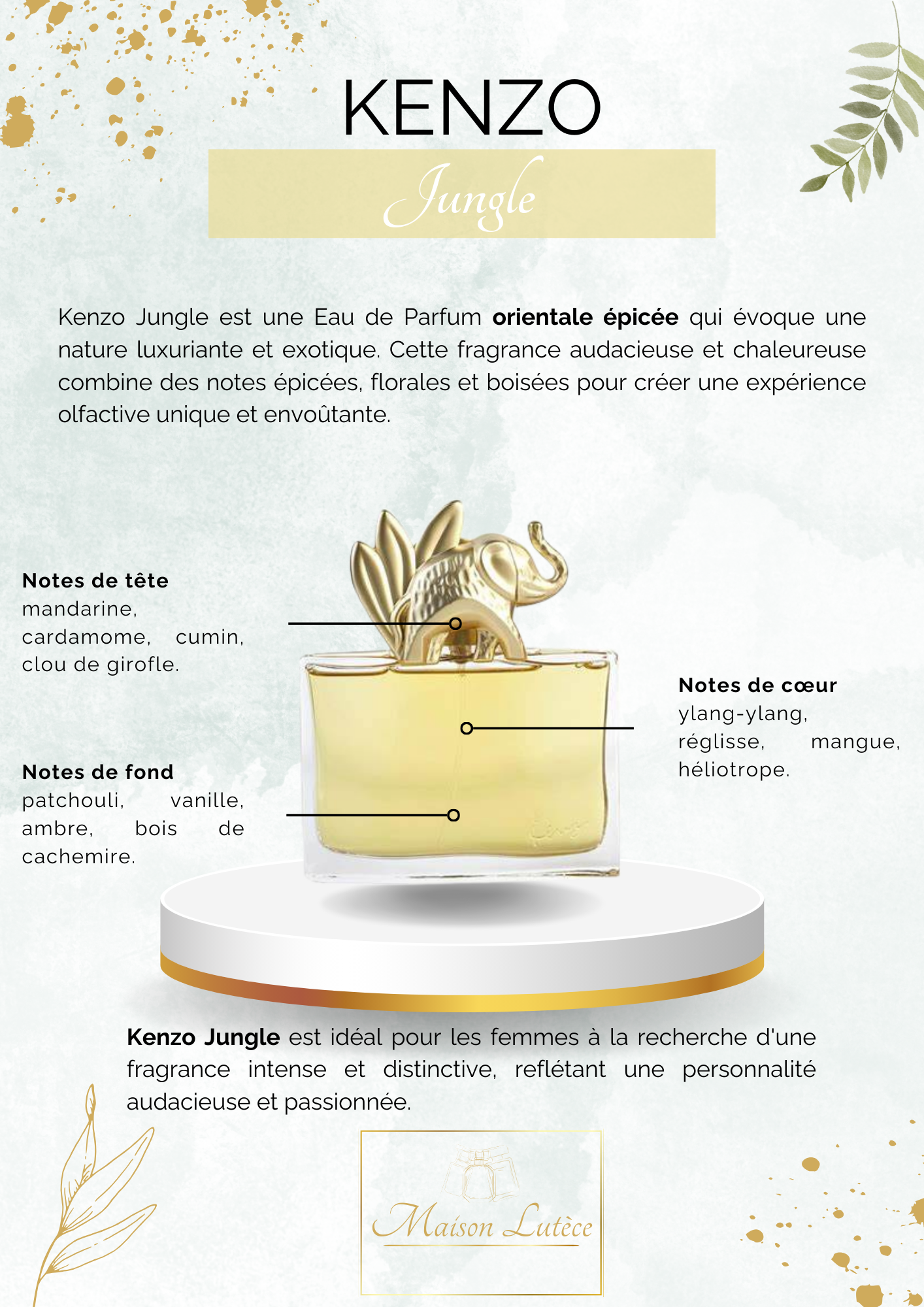 Kenzo Jungle, c’est une invitation à s’exprimer librement, avec audace. Sa composition épicée et florale crée un contraste vibrant et sensuel. Un parfum de caractère, magnétique et indomptable – à l’image des femmes qui le portent.