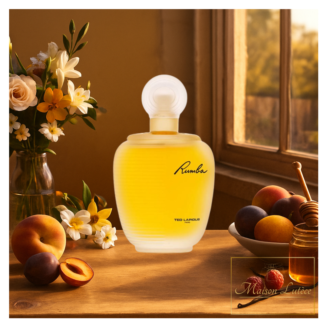 Rumba de Ted Lapidus est devenu un classique : un équilibre entre la gourmandise fruitée (prune, pêche, framboise) et la profondeur florale opulente, reposant sur une base boisée musquée et cuivrée. Sa signature chaleureuse et sophistiquée s’intensifie avec le temps, offrant un sillage durable et élégant.