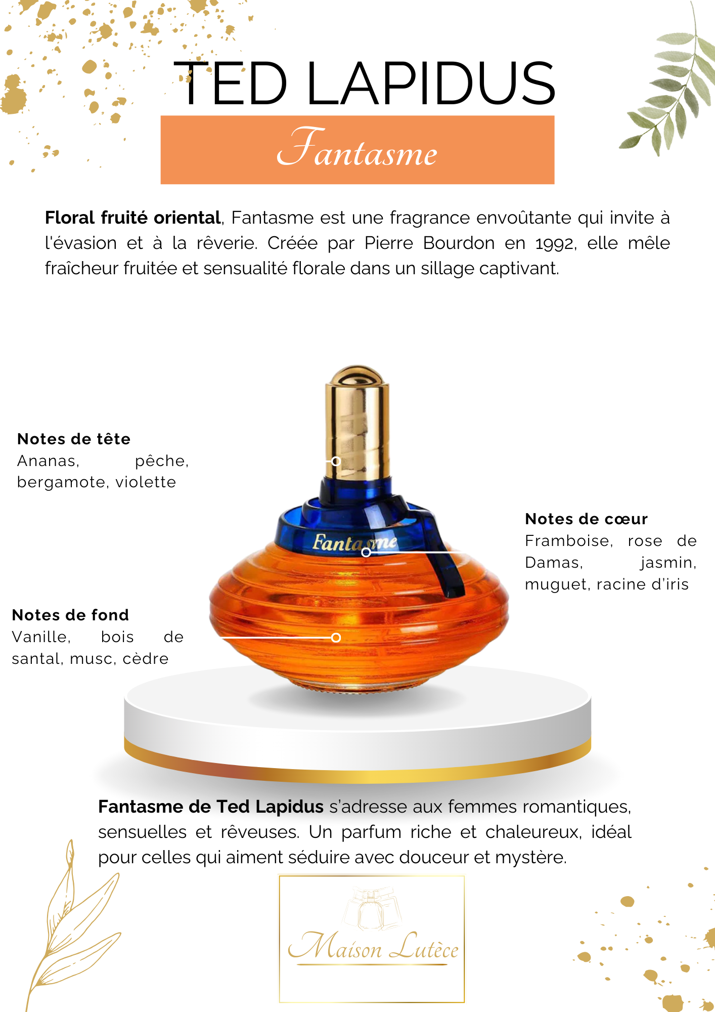 Fantasme est un parfum destiné aux femmes pétillantes, pleines de vie, qui aiment les senteurs fruitées et lumineuses. Idéal pour un usage quotidien ou une sortie décontractée, il plaira à toutes celles qui recherchent un parfum joyeux et accessible.