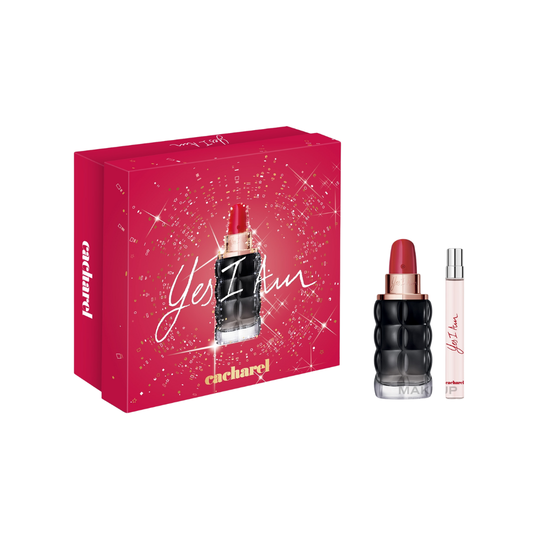 Ce coffret s’adresse aux femmes indépendantes, audacieuses et séduisantes, qui aiment les parfums puissants et gourmands. Yes I Am incarne la féminité affirmée selon Cacharel.